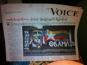 Perhaps most newsworthy was Barack Obama’s visit on the 19th. For a mere 6 hours he was in Yangon and in that time he visited Shwedagon, met with Thein Sein, went to ASSK’s house and gave a very compelling speech at Yangon University. From what my sources told me, he used the name Myanmar in public and Burma in front of ASSK. Old habits die hard.