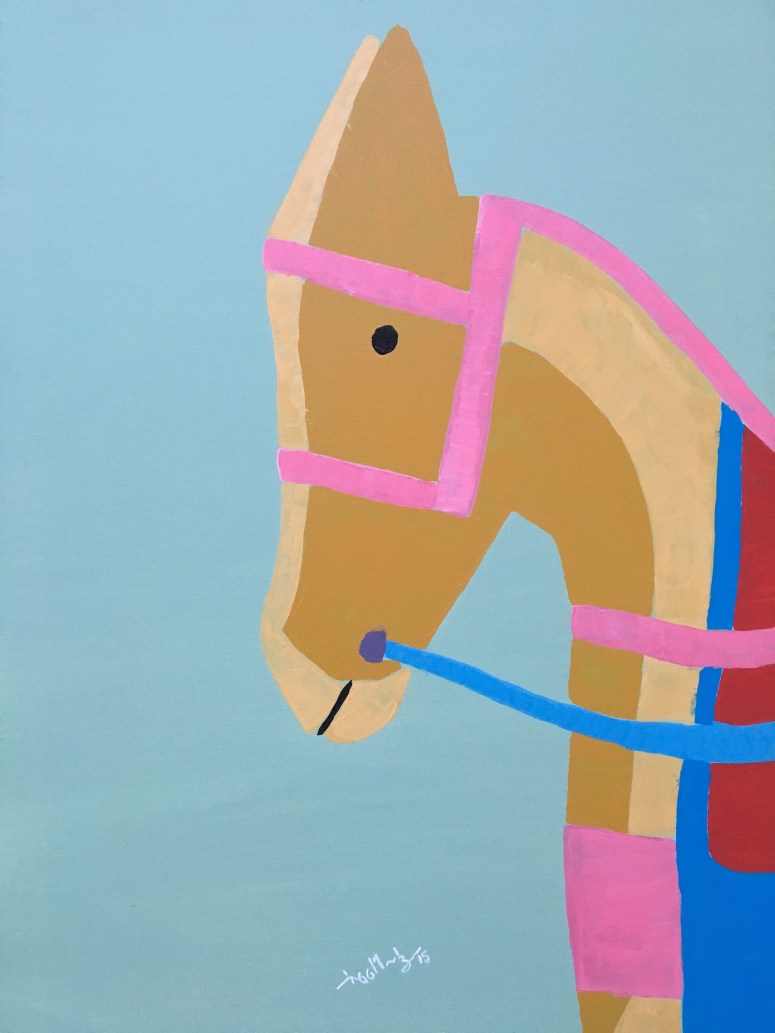 Lwin Oo Maung identifies with animals. He enjoys their mythic relevance here in Myanmar as well as their practical uses in the daily lives of farmers and traders. The Donkey Series is one of those instances of artist identifying with a misunderstood and often abused creature, a work “horse”, a funny face, a sad and tired soul. Hail to the zodiac, and the temple guardians, and jungle birds and tired horses, hail the donkeys and ants, hail to Lwin Oo Maung.